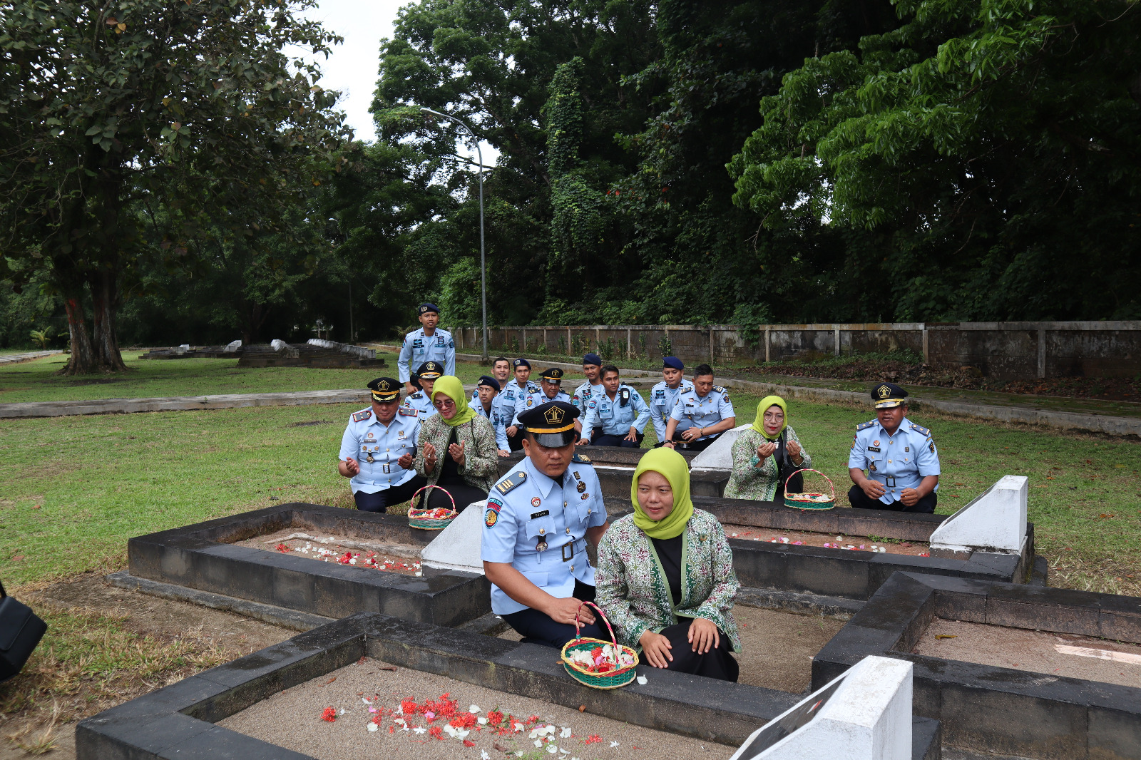 SEKAYU,- Petugas Lapas Sekayu melakukan kegiatan ziarah dan tabur bunga di Taman Makam Pahlawan (TMP) Musi Banyuasin. Ziarah dipimpin langsung oleh Kalapas Sekayu, Ronald Heru Praptama, Kamis (6/4/2023).