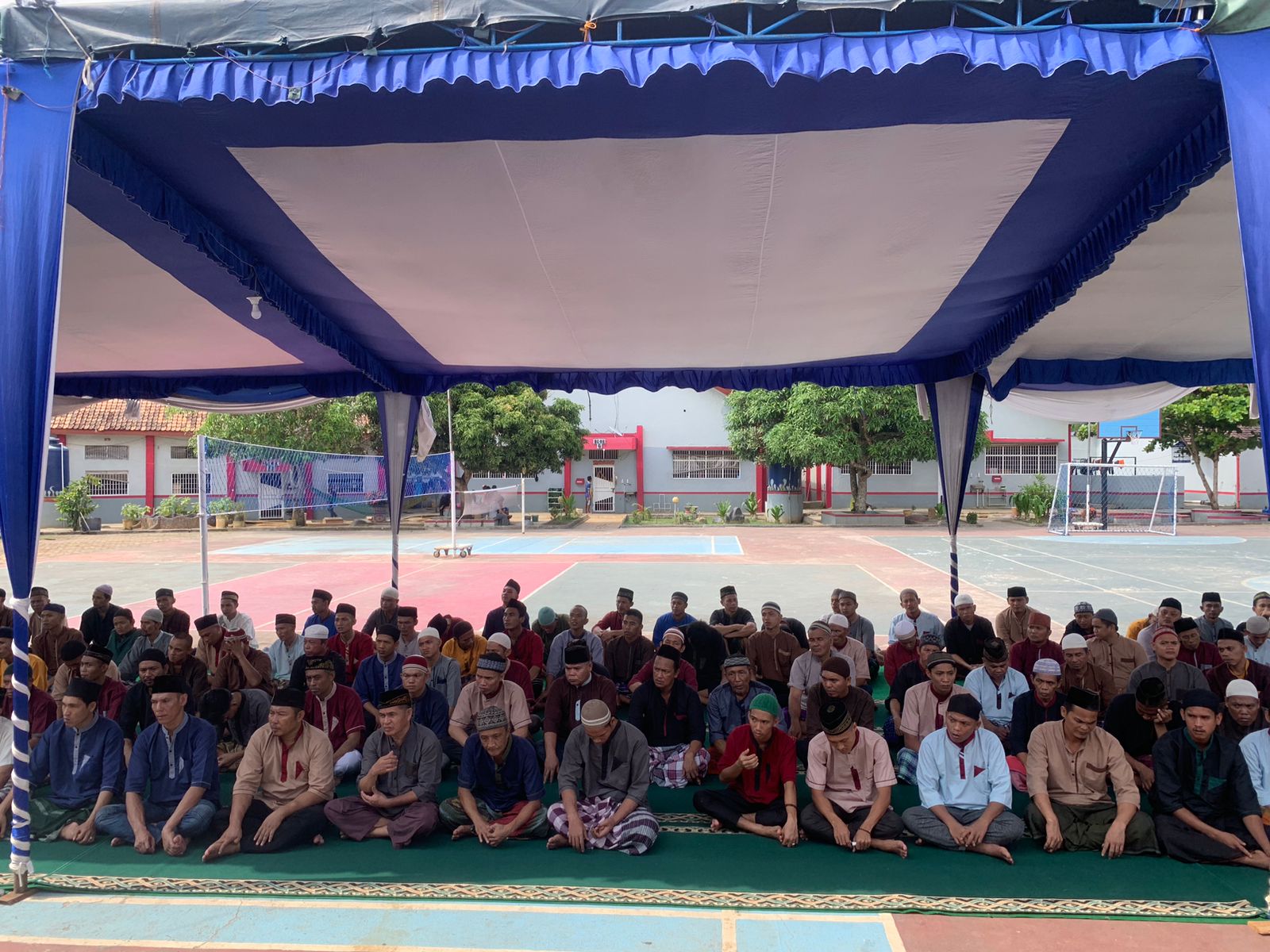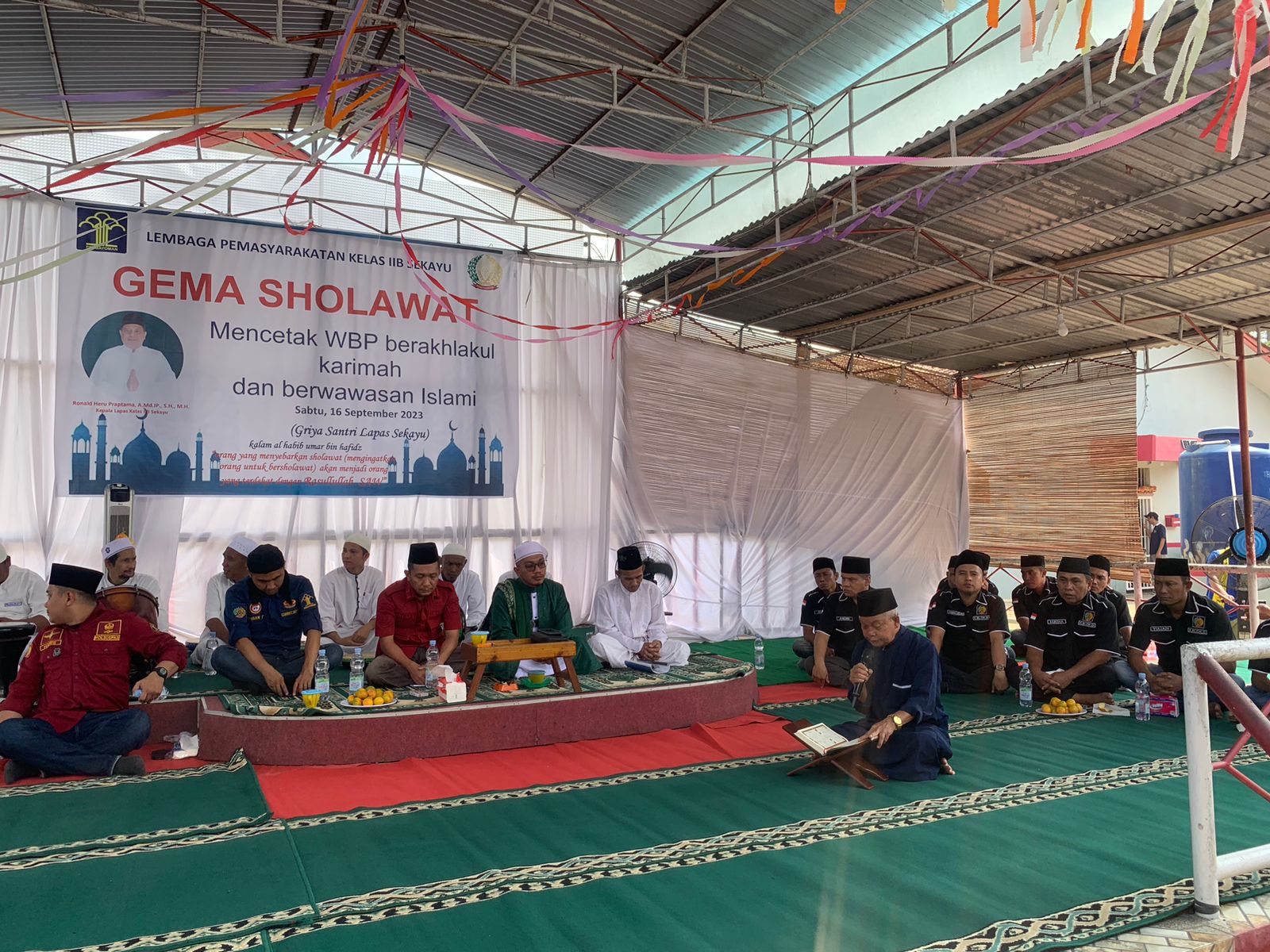 SEKAYU,- Gema sholawat nabi yang menyejukkan hati dilantunkan oleh Warga Binaan Pemasyarakatan (WBP) di Masjid Darut Taubah Lapas Sekayu, Sabtu (16/9/2023).